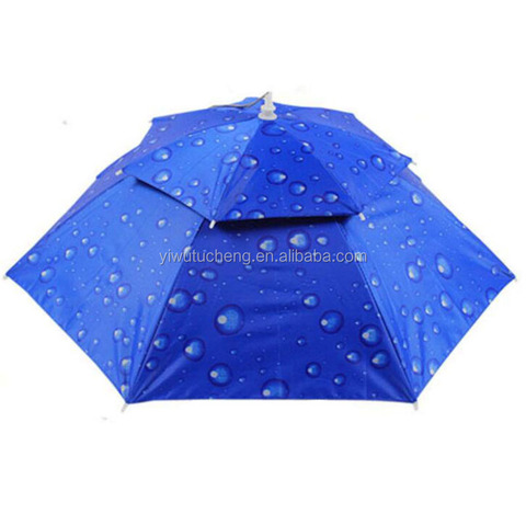 도매 야외 접이식 낚시 모자 우산 더블 레이어 머리 우산 모자 우산 인쇄 로고
